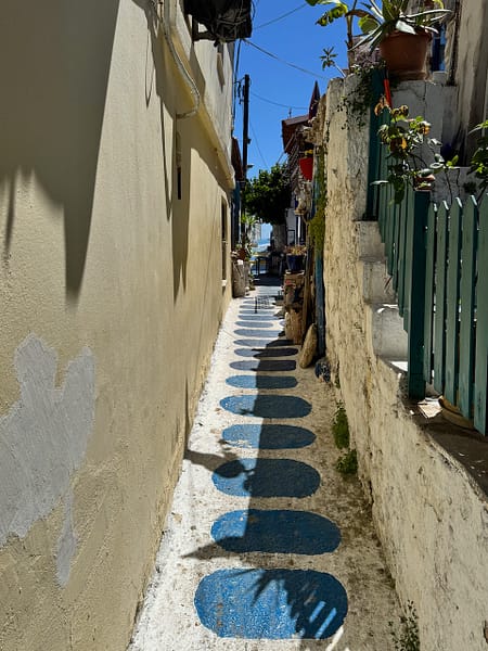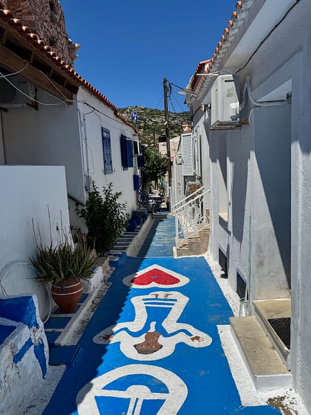 Hoogtepunt was voor mei de “Blue Street”. In deze bijna niet te vinden straat hebben bewoners zich uitgeleefd op Grieks blauw gekleurde rariteiten.