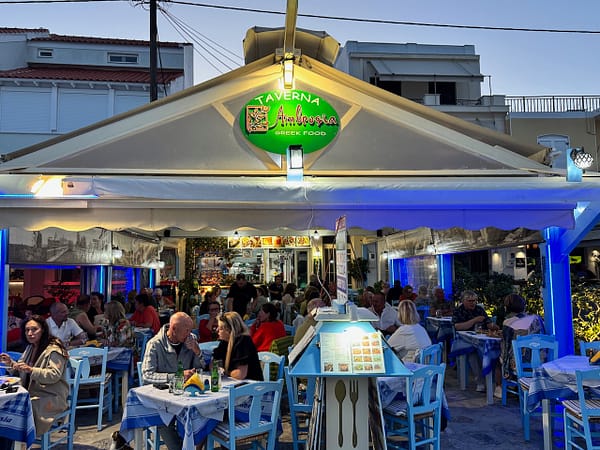 Na nog en poosje te hebben rondgeslenterd zijn we teruggegaan naar het hotel en aldaar lekker bij het zwembad geweest. ‘ s Avonds zijn we wezen eten bij een alleraardigste Griekse taverne met de naam “Ambrosia“. Hier was het dusdanig gezellig dat we hierna daar nog 5 keer terug zijn geweest.