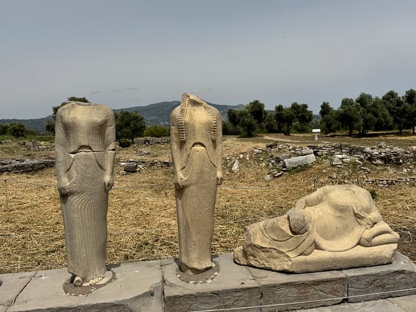Omdat de dag erna het weer nog steeds wat onstuimig was zijn we naar de ruine van de tempel van Hera gereden. Volgens de Oudgriekse schrijver Herodotus zou de tempel van Hera de grootste tempel van Griekenland zijn geweest in die periode en zou het gebouw hebben bestaan uit 155 pilaren. Deze tempel is rond 530 v.Chr. gebouwd en wat er vandaag de dag van is overgebleven is die ene gigantische pilaar die bewijst hoe kolossaal die tempel geweest moet zijn.
